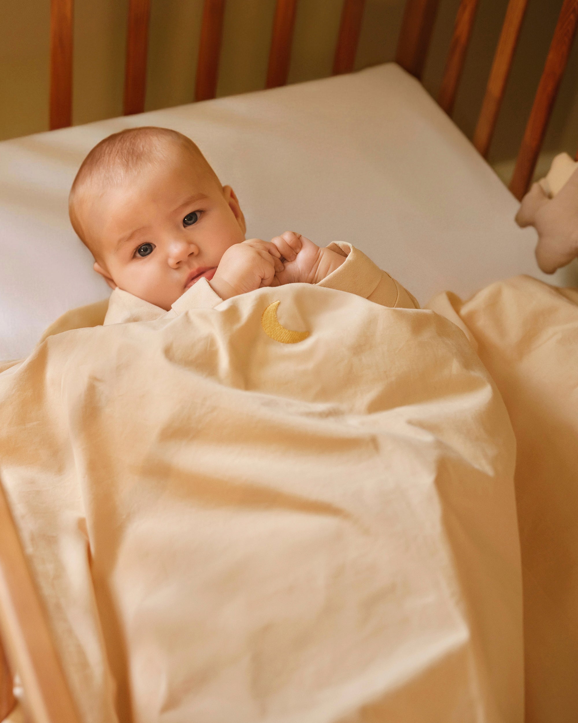 These soft bed linens invite your little one for cuddly moments and sleepy hours. Made from organic and natural materials in a timeless design for your baby's dreamiest sleep.