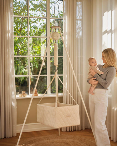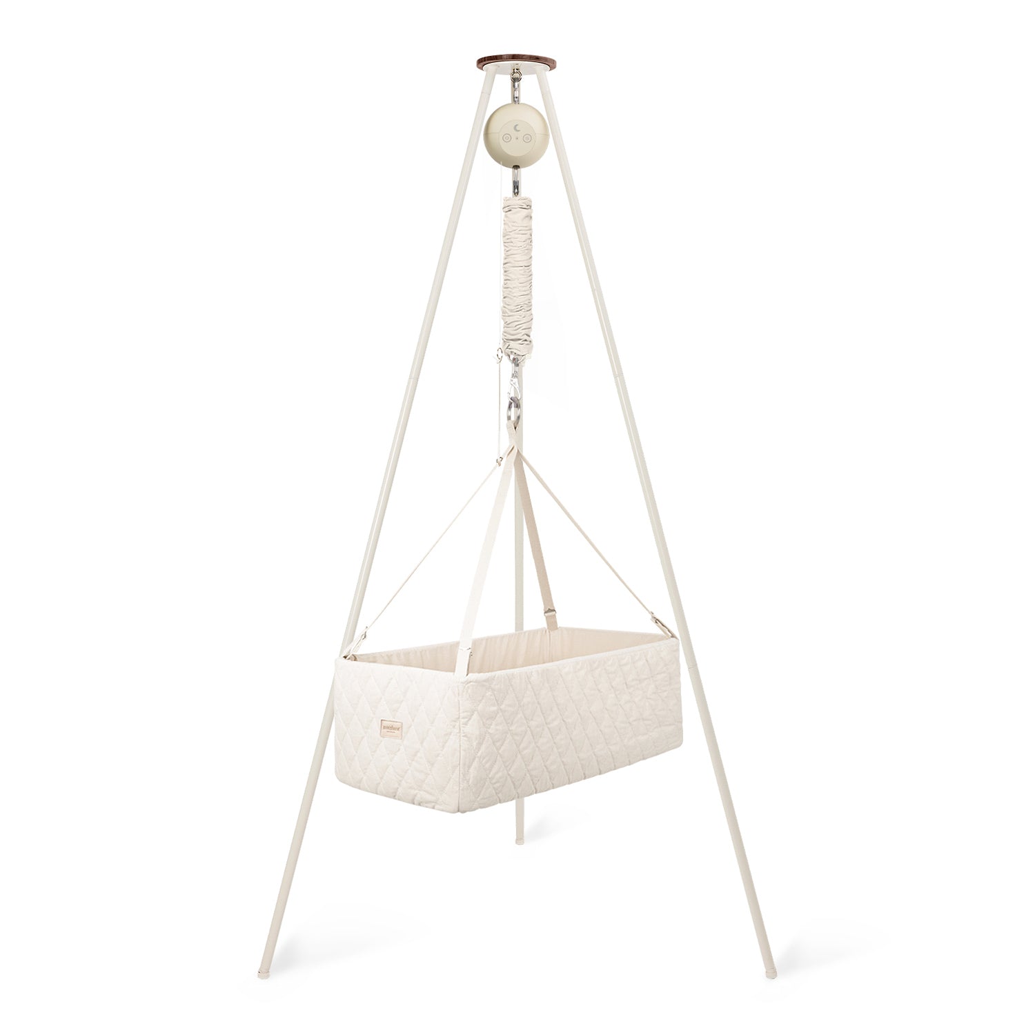 Featuring clean and modern Scandinavian styling, the cradle has been created with sleep experts in Denmark to offer a safe and calming sleeping habitat for your little one. It can be rocked at your chosen speed and for your chosen length of time thanks to one of our quiet and easy to operate motors. You have the choice between one of our app-controlled cradle bouncers - the Motor Connect Basic or the Motor Connect Premium. Attach both of these to our sturdy Scandinavian-designed tripod stand and you’re ready for any part of your home to be instantly turned into a cosy sleep zone.